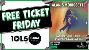 Recently PlayedNow Playing 101.5 TODAY Radio artist LISTEN NOW FREE TICKET FRIDAY to win Alanis Morissette Tickets! Alanis Morissette FREE TICKET FRIDAY 1K Wordplay with Rob & Friends! Win up to 1k A DAY! STREAM US FROM ANYWHERE! Click here and find out how! FREE TICKET FRIDAY to win Alanis Morissette Tickets! See Feature 0 1K Wordplay with Rob & Friends! See Feature 1 STREAM US FROM ANYWHERE! See Feature 2 Show Hide View MoreContests FREE TICKET FRIDAY to win Alanis Morissette Tickets! Friends... turn up the radio, crank the volume, and prepare to scream-sing like it's 1995 and your b… 1K Wordplay with Rob & Friends! Think you and Shayne share a brain cell? Or are you about to discover you live on completely differe… WIN a Rob and BLENDS Mug! ROB & BLENDS MUGS! What goes best with early mornings and endless laughs? A piping hot cup of … Show Hide View MoreEvents Weather Calgary, AB, Canada -15 °C Partly cloudy
